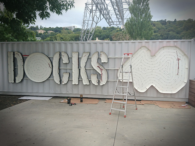 Enseigne lettres relief lumineuses pour le restaurant Docks40 à Lyon (69)