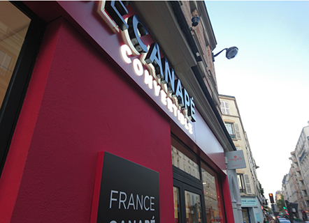 Pour habiller les façades des magasins France Canapé, Pelletier a conçu et installé des enseignes mélangeant lettres en relief rétro-éclairées et un caisson évidé avec contre-face en PMMA. Cette combinaison apporte une visibilité élégante et raffinée, en accord avec l’identité visuelle de la marque. Une équipe de Lyon s’est spécialement déplacée à Paris pour assurer la pose des enseignes, garantissant ainsi une finition parfaite et une harmonisation entre les différents points de vente.
