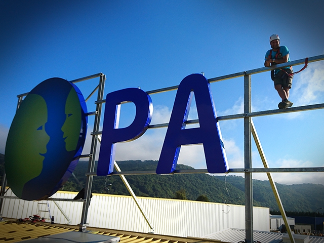 L’installation de l’enseigne sur la structure du toit a été réalisée par une équipe de deux poseurs habilités en électricité et détenteurs du permis CACES pour l’utilisation de machines de levage. Cette équipe a pris en charge la fixation, le câblage des LED et la mise en service de l’enseigne, garantissant un résultat impeccable et sécurisé. Grâce à l’expertise de Pelletier, Paprec Plastique bénéficie désormais d’une enseigne à la hauteur de son statut de leader du recyclage, visible de loin et respectueuse des contraintes techniques et environnementales.