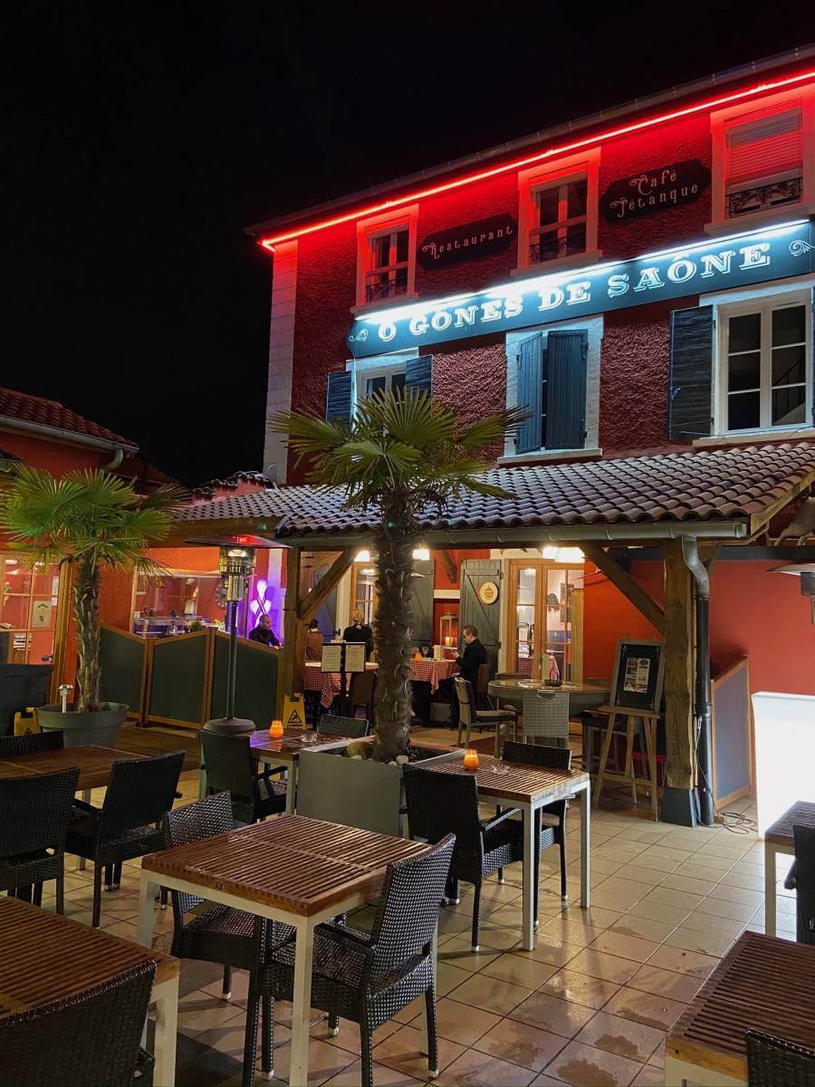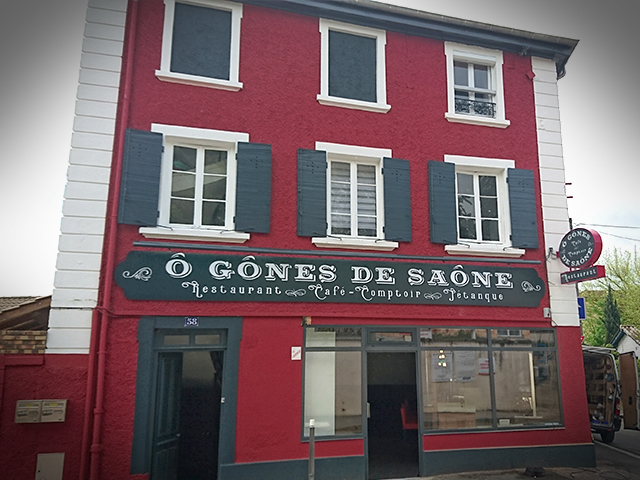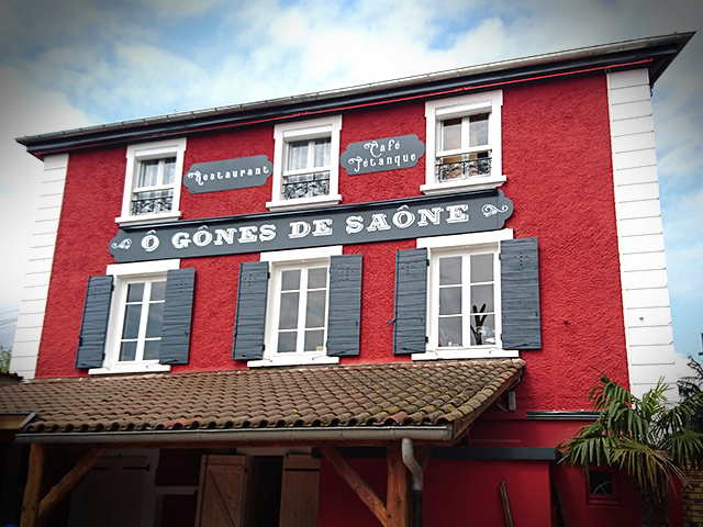 Pour le restaurant Ô Gones de Saône, situé à Fontaines-sur-Saône, la société Pelletier a réalisé un travail minutieux pour refléter l'ambiance unique du lieu. Le restaurateur, souhaitant marier tradition et modernité, a opté pour des enseignes en harmonie avec son établissement, mettant en avant sa cuisine raffinée et ses moments conviviaux, tels que les happy hours ou les parties de boules sur la terrasse. Les façades rouges du bâtiment, symbole fort de la tradition lyonnaise, ont été sublimées par des enseignes sobres et efficaces, tout en conservant le cachet authentique de ce lieu du début du 20ème siècle.