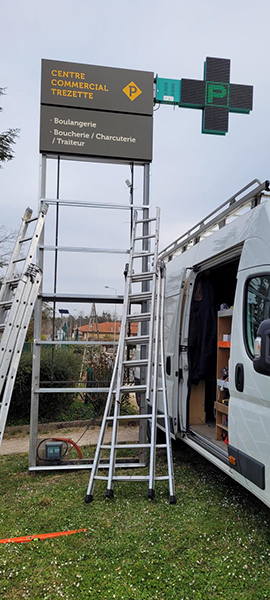 La phase finale du projet a consisté à la repose des caissettes en aluminium, assurant un montage sécurisé et durable. En parallèle, nous avons pris en charge le câblage de la croix de pharmacie intégrée au totem, avant d’en effectuer la mise en service. Grâce à notre expertise, le totem a retrouvé toute son efficacité visuelle et fonctionnelle, tout en respectant les exigences du client. Pelletier confirme ainsi sa maîtrise dans la rénovation et l'habillage de totems dans la région Rhône-Alpes, assurant à chaque projet une finition soignée et durable.